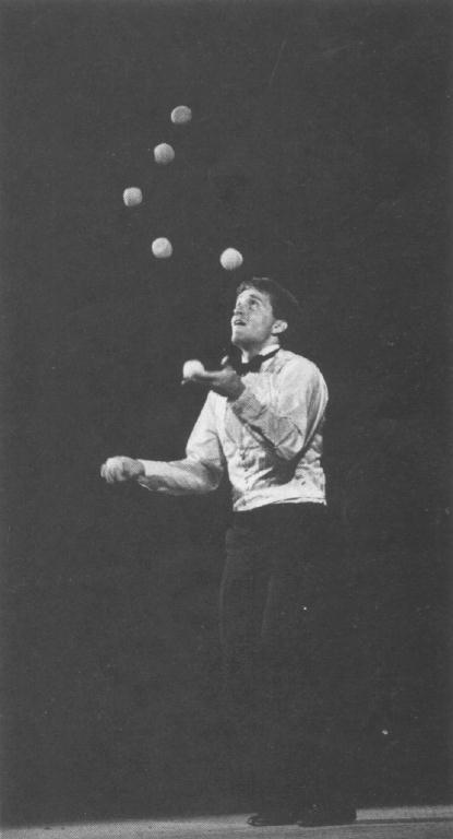 From his opening trick there was no doubt in the audience of Gatto's superior juggling ability. His appearance in handsome long pants and long-sleeved shirt instead of the shorts and sport shirt he used to wear conveyed a message of professionalism.