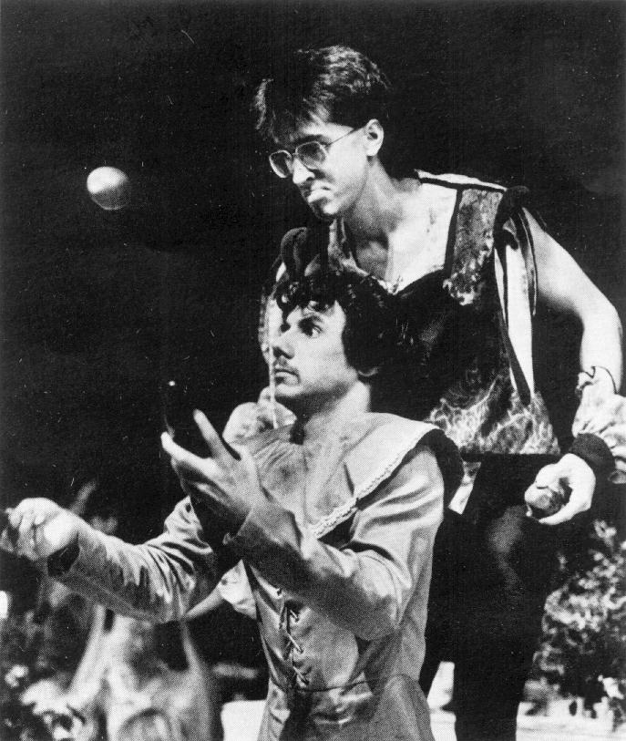 It started out quite innocently. The first big juggling performance John and I were asked to do was for the Madrigal Feast at Ithaca College, where we were enrolled at the time. It was a Christmas-time Renaissance dinner show, with performers entertaining the lord and lady of the manor and their 300 guests. These guests, the elite of Ithaca society, pay a hefty sum to be wined, dined and entertained. The motif of the affair called for medieval clothing, which meant tights.