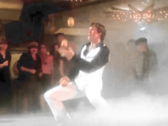 At 20:32, Robert Hays juggles 3 balls for about 5 seconds as part of a disco dancing scene.