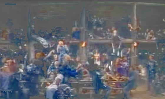 At 1:10:10, there is a Viking banquet and two club jugglers are in the background, seen 7 times during this two minute scene.