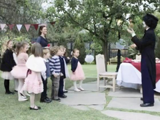 At 30:03, Stephen Sheehan plays a clown performing for a children's party, and juggles 3 balls poorly for 8 seconds.