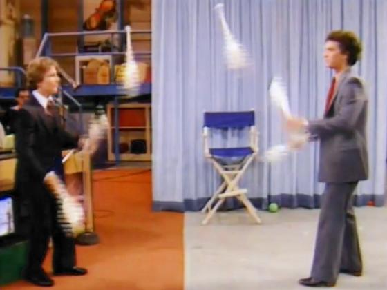 juggling 3 clubs each, then passing 6 clubs, and then Scolari does 3