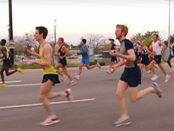 At 0:02:05, we are briefly introduced to Michal Kapral, contender for fastest marathon while juggling.
