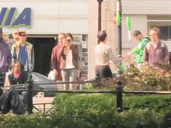 At 1:18:37, a street performer