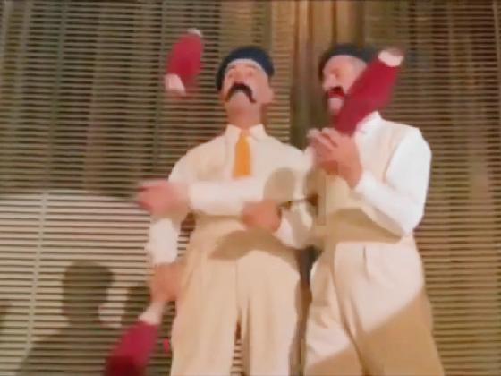 At 32:40, The Grays, led by Eddie Gray, do a 3 club comedy juggling routine, seen for 1 minute 42 seconds.