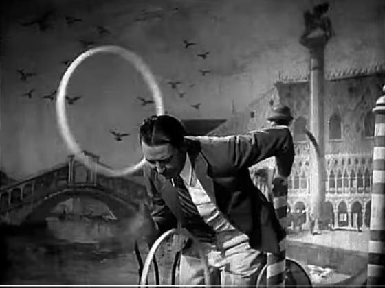 At 48:39, The Shattucks audition as a variety act for a musical show. Ward Shattuck rolls 3 hoops over his back, while his wife Ethel Shattuck juggles 3 clubs. Ethel then quickly tosses many hoops one at a time to be caught by Ward over his head.