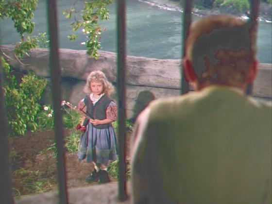 At 34:28, while Hans is in jail, he looks out the window and talks to a little girl carrying a red diabolo and hand sticks.