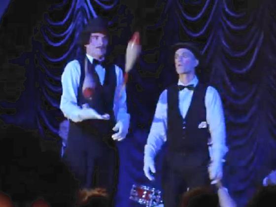 performers on a stage could be seen in the background, including
