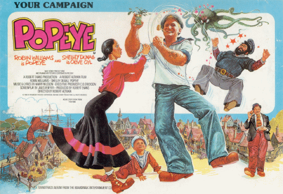 PopeyeRobert Altman film; Robin Williams, Shelley Duvall, Ray Walston