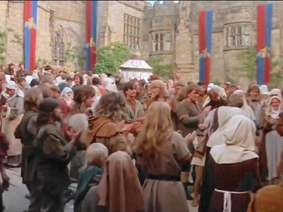 At 05:48, during the first courtyard scene when Prince Humperdinck