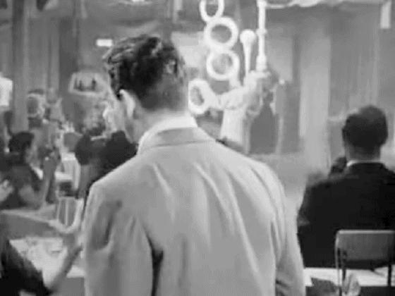 At 39:50, a door is briefly opened overlooking the nightclub showroom, and we see someone through the doorway in the background juggling 3 top hats for about 2 seconds,
