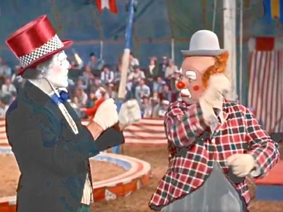 At 28:53, The Johnson Brothers, Duke Johnson and Harry Johnson, can be seen juggling 3 clubs each and passing 6 clubs, but only very briefly and in the background, and almost entirely obscured by two clowns in the foreground.