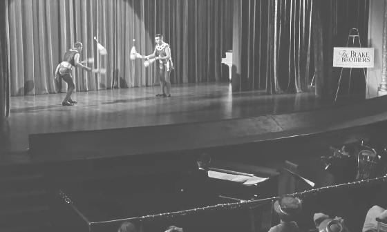 At 04:45, a juggling team called the Blake Brothers is seen warming up backstage passing 6 clubs for 5 seconds.