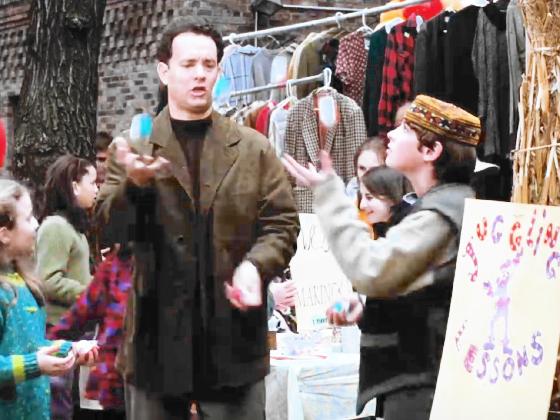giving juggling lessons, played by Nick Brown, and credited as juggler.